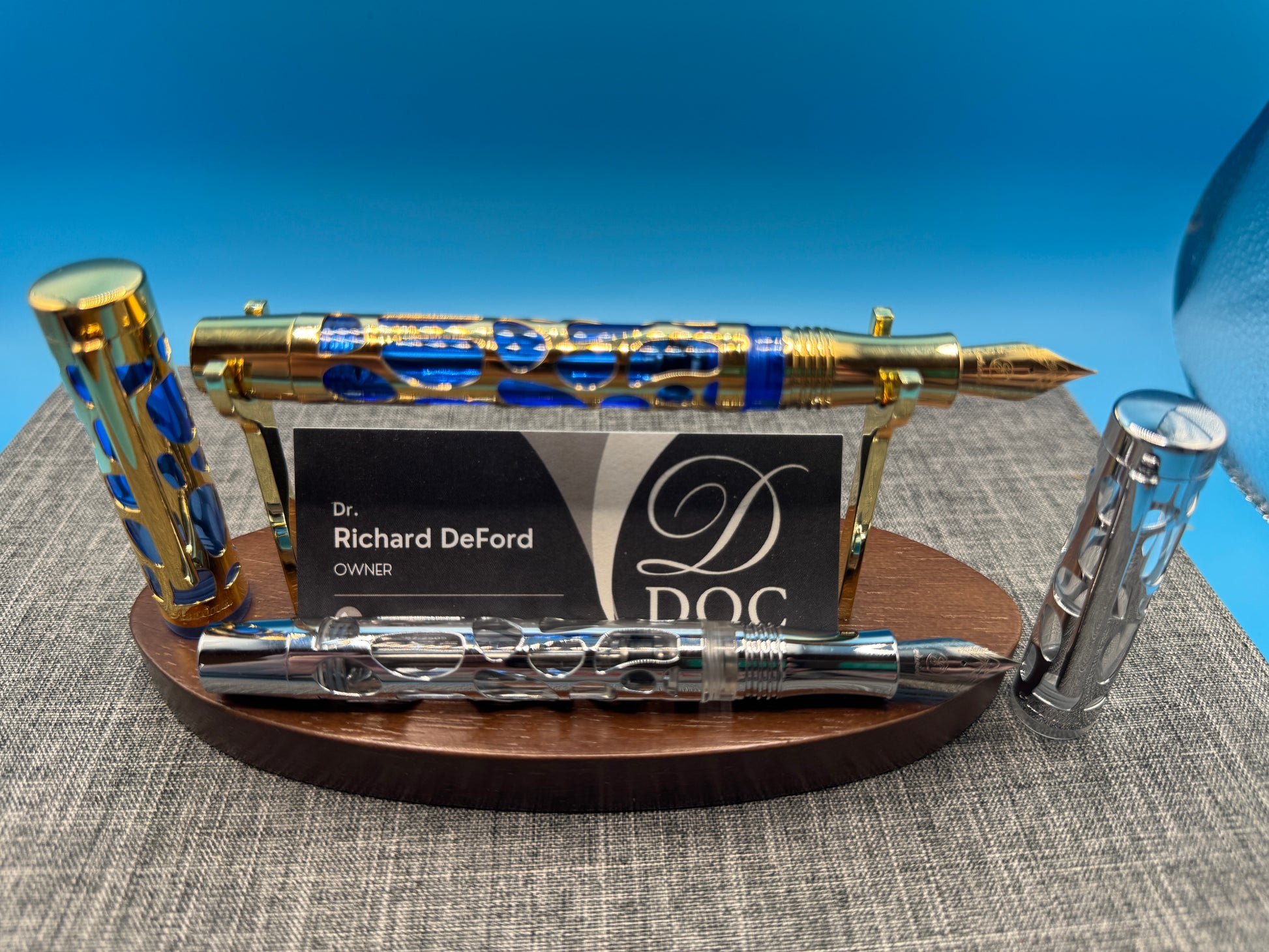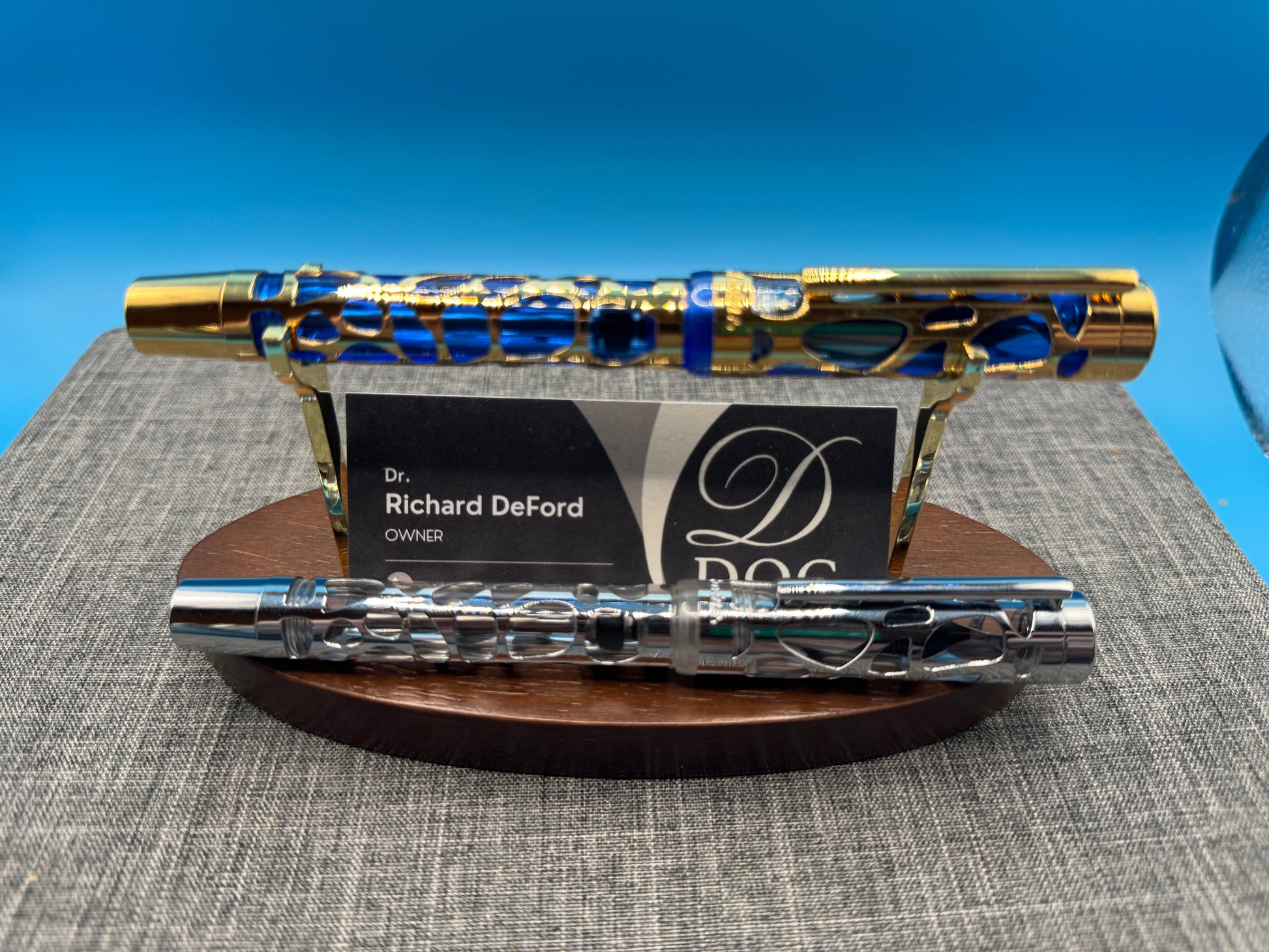 - Handcraft and Durability –- The skeleton net was made of brass and features chrome finish while the body made of precious transparent blue acrylic. Each pen was hand assembled and checked for flawless quality by our professional craftman
