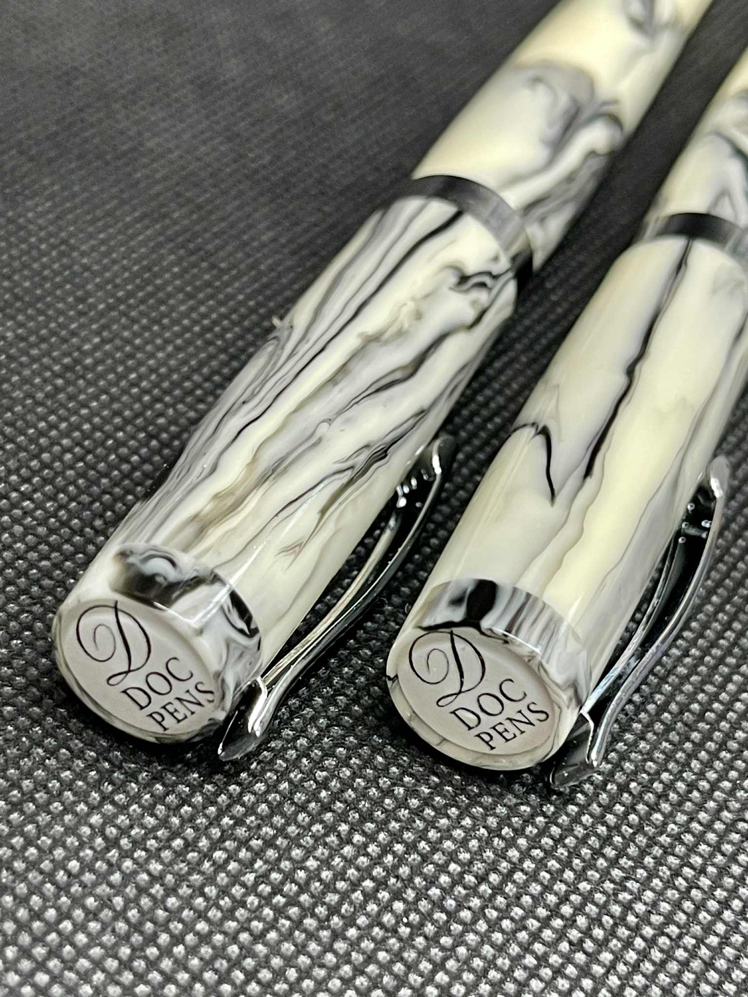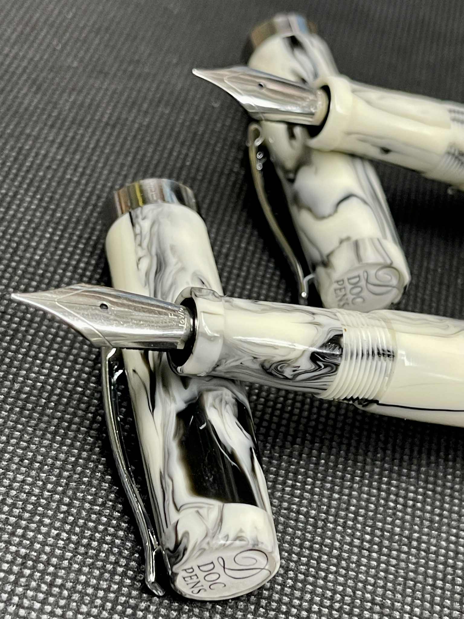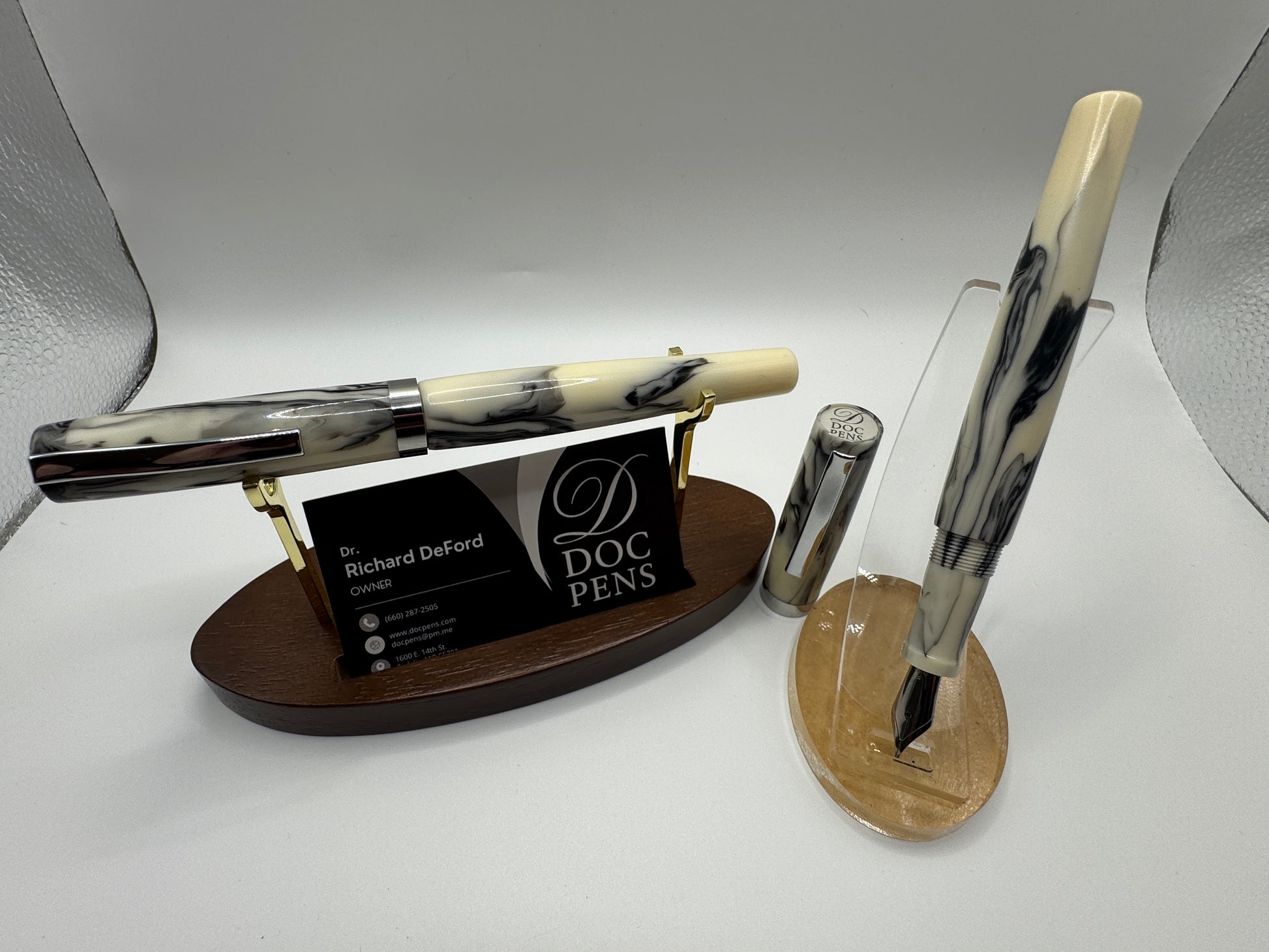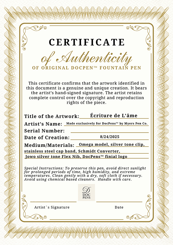 These Écriture de L'âme (Soul Writing) pens were made exclusively for Doc Pens by Myers Pen Co. to our provided specifications. These are incredible pens and we would put them up against any top tier writing instrument, and we have tried almost all of them. Let us know what NIB you want: F, M, Flex. Doc Pen carries one of these pens as his daily instrument and it garners a lot of attention.