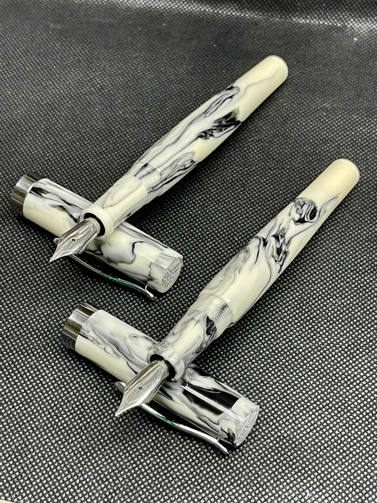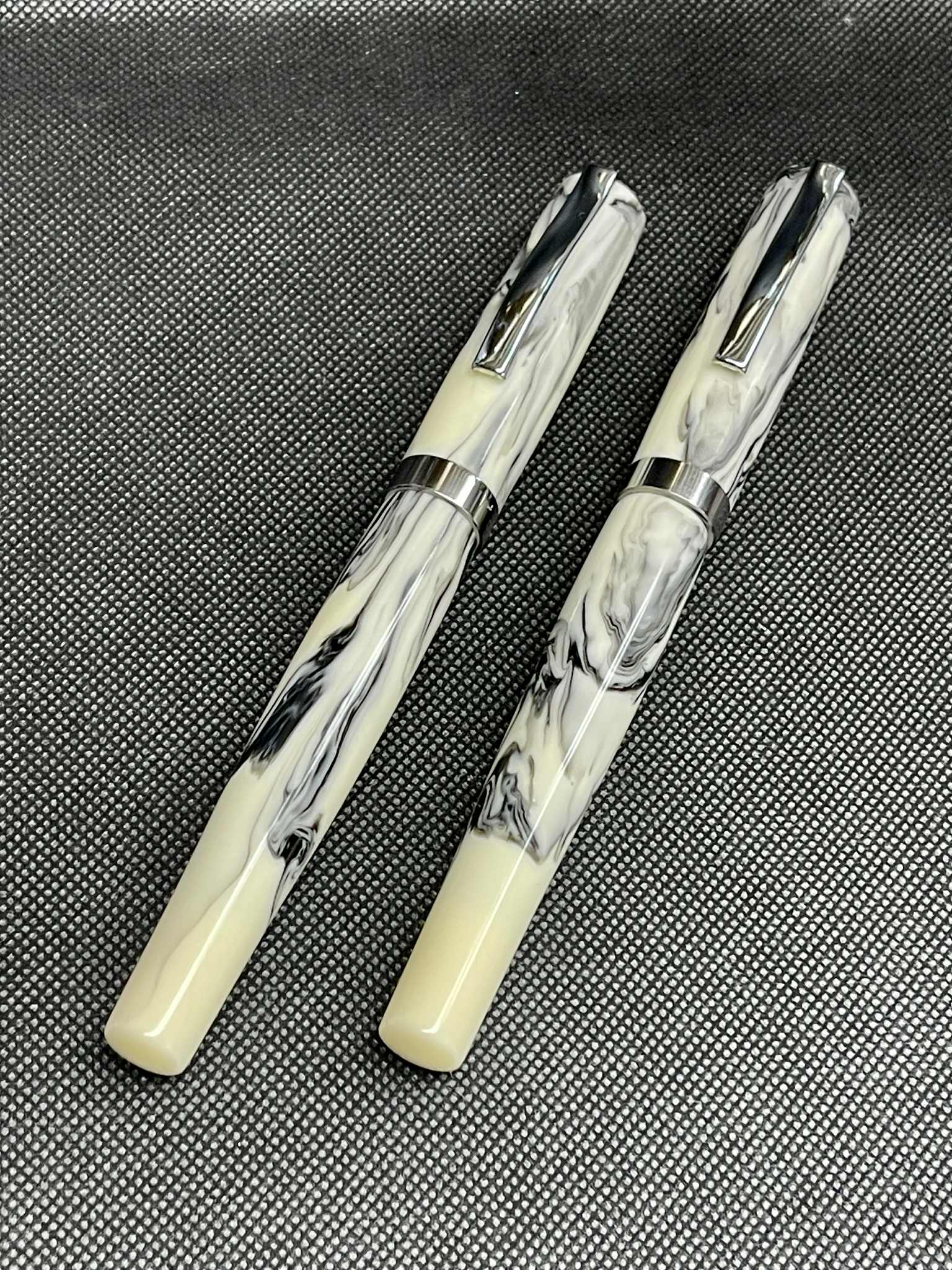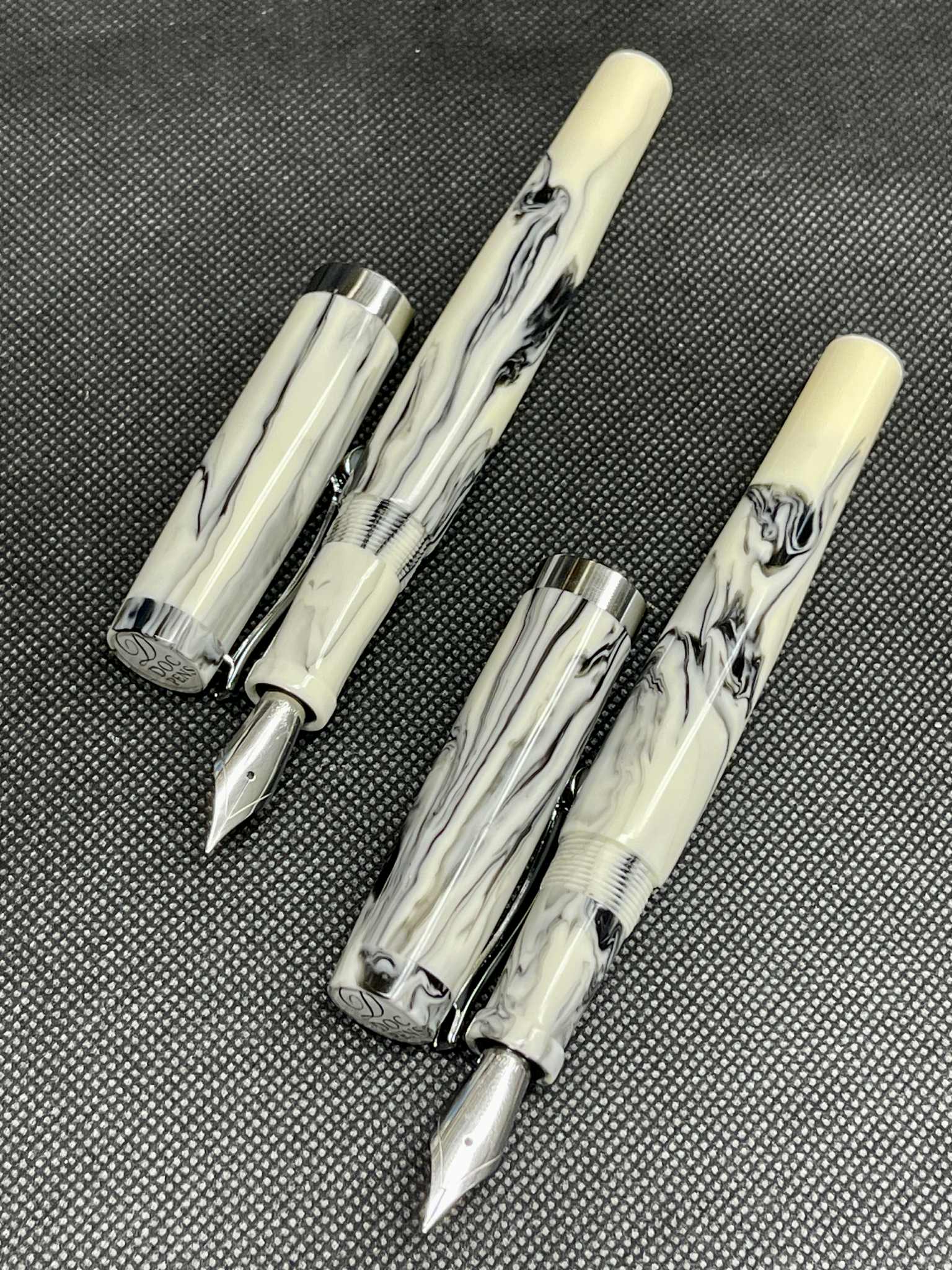 These Écriture de L'âme (Soul Writing) pens were made exclusively for Doc Pens by Myers Pen Co. to our provided specifications. These are incredible pens and we would put them up against any top tier writing instrument, and we have tried almost all of them. Let us know what NIB you want: F, M, Flex. Doc Pen carries one of these pens as his daily instrument and it garners a lot of attention.