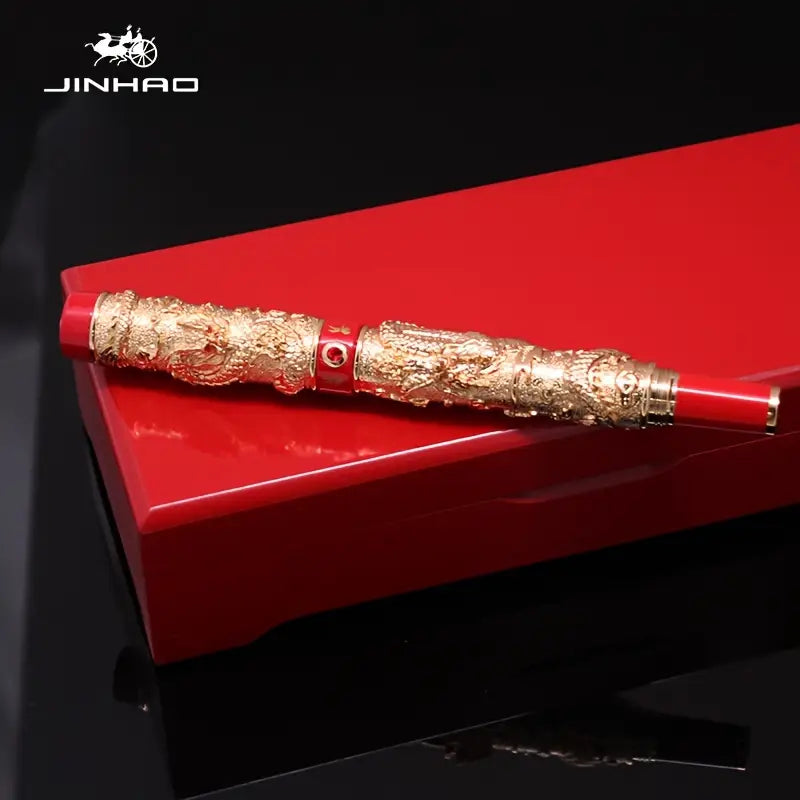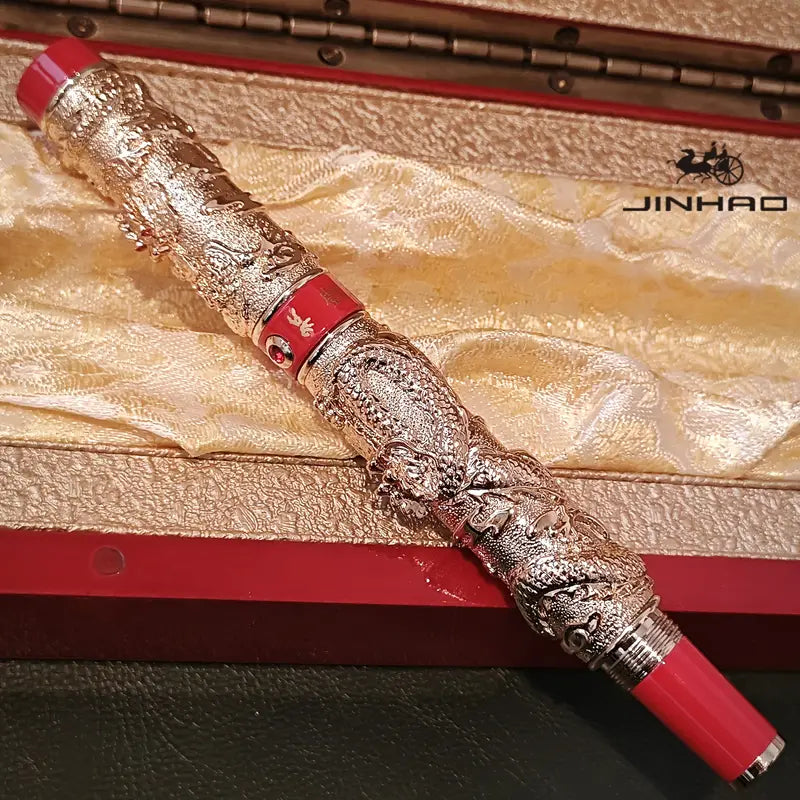 Jinhao Double Dragon Copper Fountain Pen, Medium Nib
