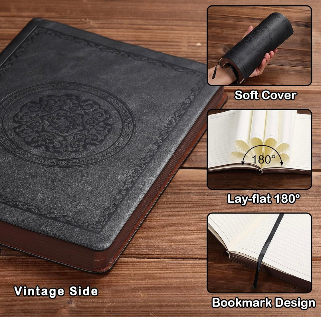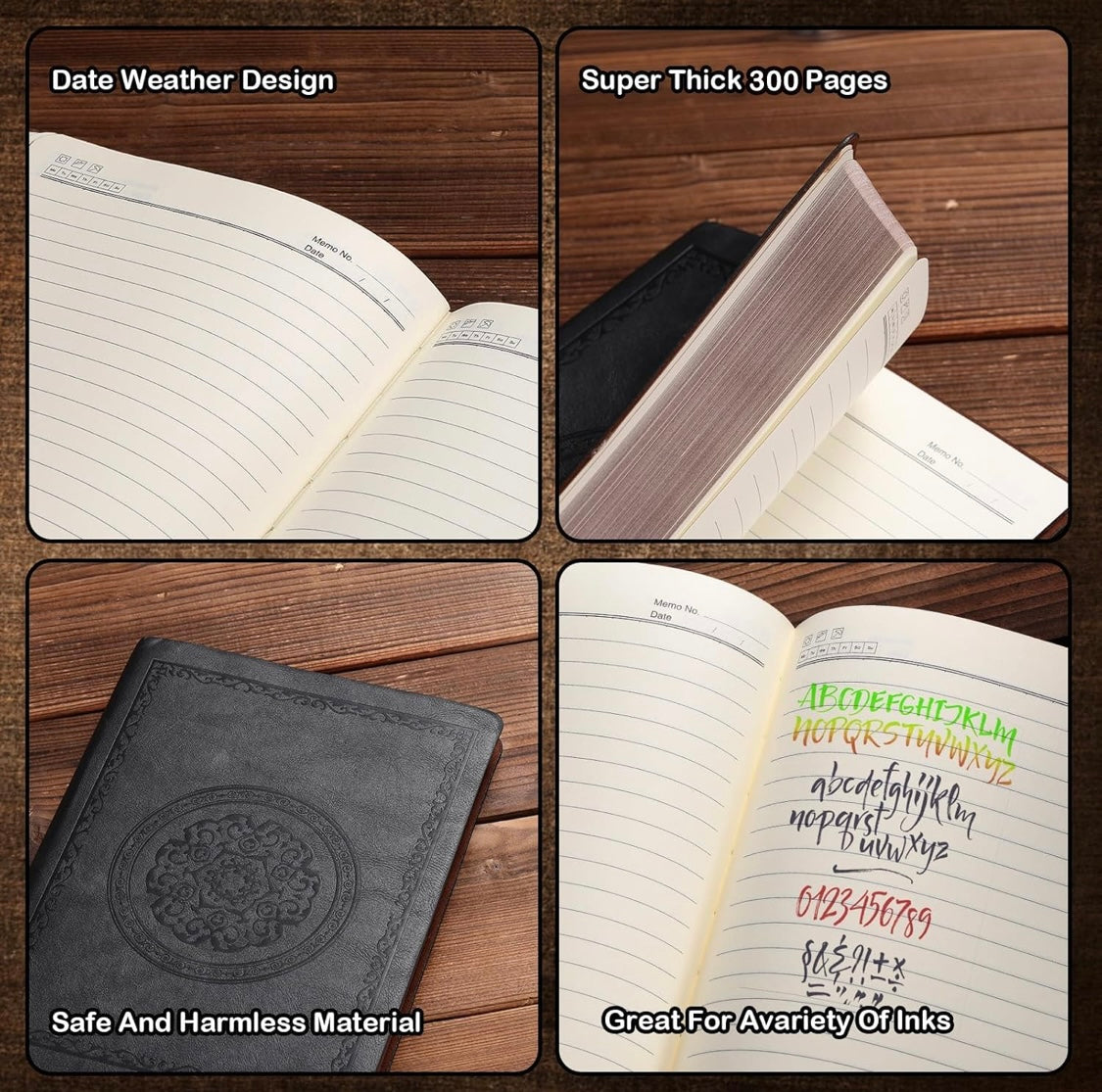 2025 Leather Vintage Journal Notebook,300 Pages,Leather Softcover Lined Journal Notebooks for Women Men,Notebook Journals for Writing Travel,Business,Office,5.7'' X 8.3'',Black