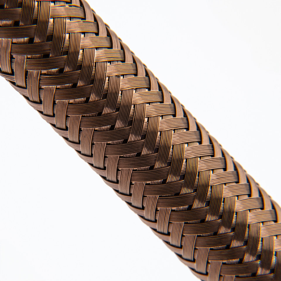 The Monteverde Innova™ Formula M is an extraordinary writing instrument collection that combines unique materials and cutting edge designs that will entice not only pen aficionados, but anyone who dreams of life in the fast lane. Inspired by the racing industry, the Monteverde Innova Formula M collection evokes the power, speed and elegance of competition. All pens in the collection feature a 304 wire-braided stainless steel sleeve with PVD coating over a brass barrel. Wire braiding is often fitted on high-performance cars as it offers the best possible protection against mechanical damage. The braided mesh is made by winding wire around a core on spools that are rapidly rotated in a circular pattern, weaving the wire together and molding it into a flexible and robust braid. 304 wire-braided mesh’s advantage lays in its incredible durability and resistance against UV rays, abrasion, and chemical corrosion, making it virtually indestructible. Each writing instrument is fully-covered with matte PVD coating, providing key performance features while giving additional vibrancy, luster, and durability. PVD (Physical Vapor Deposition) is a process that uses diverse thin film deposition techniques that focus on vaporizing a solid material in a vacuum environment, resulting in deposition onto the surface as a pure material coating. This material coating is appealing to the eye but also extremely durable, can reduce friction and serve as a barrier against any potential damage caused by the external environment and usage of the product. Moreover, PVD coating is highly resistant to tarnishing and corrosion, which makes it perfectly suitable for decorative finishes with colors that do not fade. Each pen features cap and a front sections made from sold brass and coated with matte PVD. A unique and attractive CARBON FIBER RING offsets the gunmetal appointments and completes the racy design. The Innova Formula M collection offers three color options: PVD black, PVD blue, and PVD bronze and is available as either fountain pen, rollerball pen or ballpoint pen. The fountain pen is equipped with a premium stainless steel #6 JoWo nib engraved with the Monteverde USA logo and fills via standard cartridge or converter (included). The nib is available in Extra Fine, Fine, Medium, Broad, 1.1mm Stub and Omniflex point sizes. The capped rollerball accepts standard international rollerball refills (Monteverde G2 and W2 rollerball refills). The twist action ballpoint fills with standard Parker® style refills (Monteverde P1 and P4 ballpoint refills). Each Innova Formula M pen is housed in a luxury gift box with a custom-designed sleeve.
