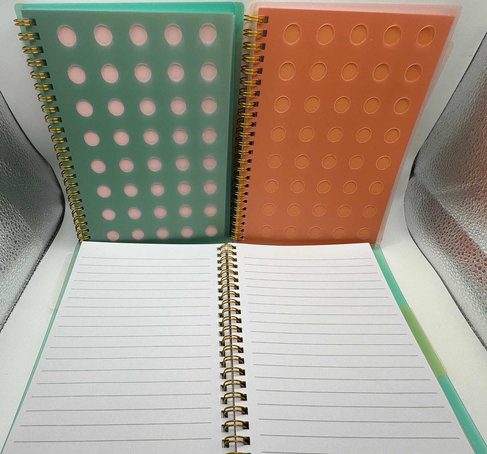 - Capture your thoughts, notes, and creative doodles in style with the Poly Die Cut Notebook. This sturdy and stylish notebook is perfect for students, professionals, and anyone who loves to jot down ideas on the go. The die-cut design adds a unique touch to the notebook, making it not only functional but also a trendy accessory for your desk or bag. The notebook features a durable poly cover that resists tears and damage, ensuring your notes stay protected no matter where you take it. The spiral binding allows for easy page turning and lays flat for comfortable writing. With standard dimensions, it fits easily in most bags and backpacks, making it convenient for daily use. Inside, you'll find high-quality paper that is smooth and easy to write on, whether you're using a pen, pencil, or marker. The lined pages help keep your writing neat and organized, and the ample margins provide space for additional notes or highlights. Whether you're taking notes in class, brainstorming for a project, or recording your personal musings, the Poly Die Cut Notebook is an excellent choice for all your writing needs.