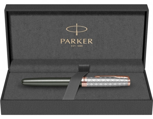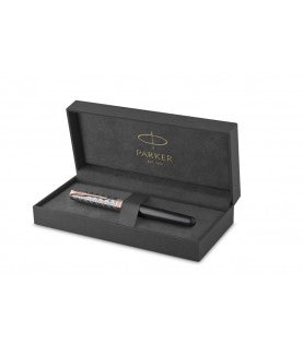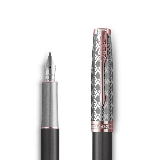 The refreshed, latest collection from Parker ad. 2021. Sonnet Premium is a huge experience of the Parker brand in creating high quality stationery. The ferrules in Parker Premium pens are deep chemical etched to make sure that the intricate patterns have been made to the highest standards. The new Deluxe patterns are chiseled, giving the effect of a deep texture that can be felt under the fingers. Noble materials The entire new collection has been finished with precious materials. From yellow and rose gold to chiseled silver and nibs made of 18K gold. Each an element of the Sonnet Premium collection has been thought out and meticulously made.